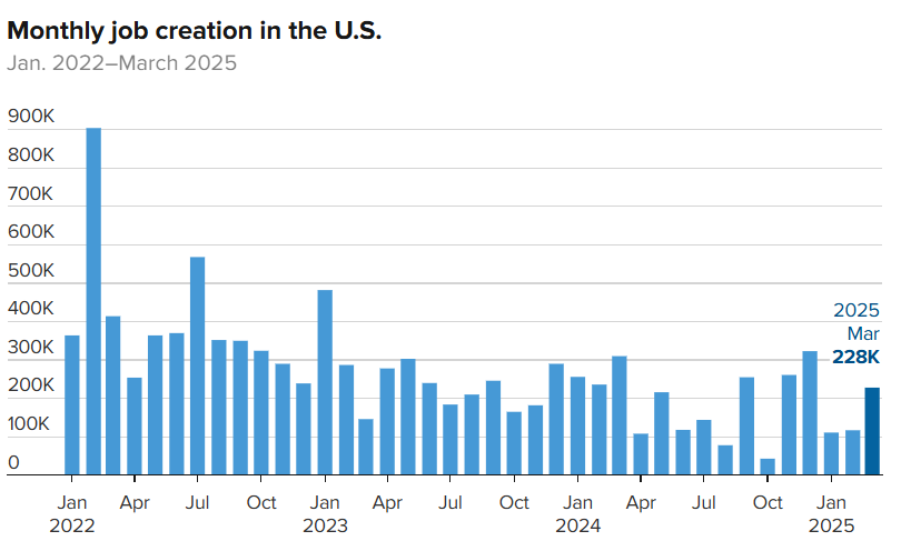 Job data came in this last week beating expectations. 228k new jobs came in March, following just 111k and 117k in January and February. It's one bullet point showing the economy is still humming along. The good news was largely overshadowed by all the other news going on.