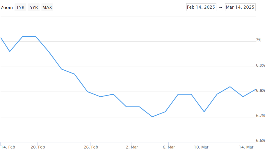 Happy Pi day!!! It's been a pretty good month for mortgage rates, dropping from 7% to 6.8%. We saw a bottom of 6.7% on March 4th but have come back up a small amount in the 10 days since. Probably not quite in "refi territory" yet but getting close for some borrowers in the low to mid 7s. Read on for this month's top stories affecting mortgages.