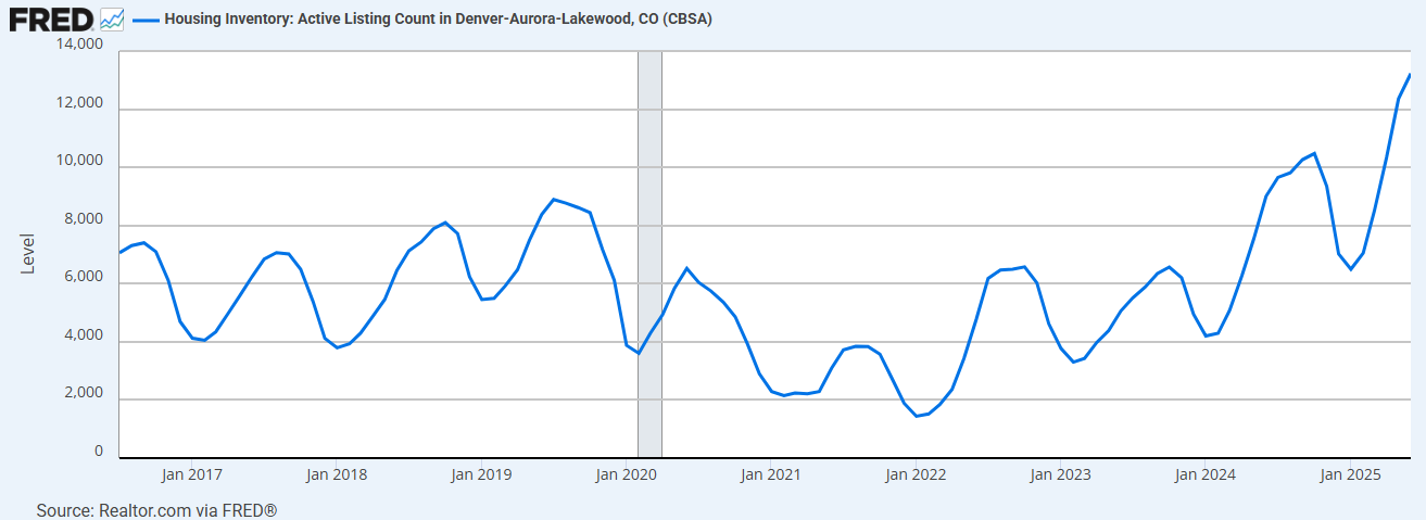 The primary headline in the Denver market is a seemingly ever-growing amount of supply. Redfin estimates a 42% seller surplus (4,800 more sellers than buyers) — their widest gap on record. While this data would point to a buyer's market, prices remain high from my perspective. I'm curious to hear what you think we'll see in the back half of this year!