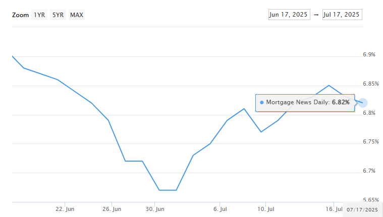 Monthly RUNdown time! Mortgage rates have been seesawing since my last update. Right now the national average Conventional 30 year fixed rate sits at 6.82%.
